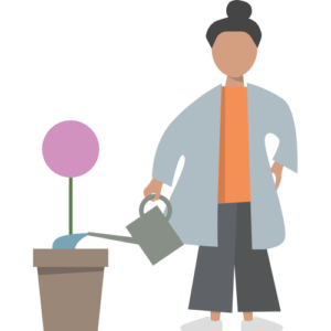 Die Betreuungskraft gießt Blumen auf der Terrasse, auf dem Balkon oder im Haus. Blätter oder sonstiges, das eine Rutschgefahr birgt, wird auch entfernt.