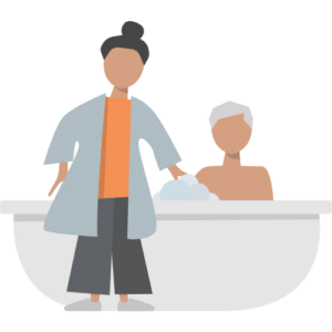 Die Betreuungskraft leistet Hilfestellung oder unterstützt vollständig bei der Körperpflege und beim Anziehen. Hierzu zählen auch Haarpflege, Rasur, Hilfe bei Toilettengängen und Inkontinenzversorgung.